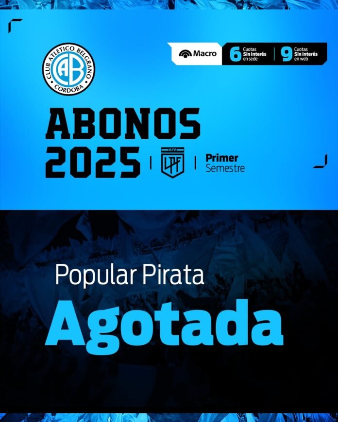 La venta de abonos para el primer semestre de la temporada 2025 avanza a buen ritmo, y Belgrano ya casi todas las ubicaciones ocupadas. La primera en agotarse fue la popular pirata.