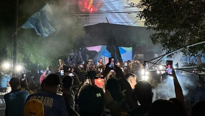 Con el correr de los minutos, el público celeste fue arribando poco a poco a las inmediaciones del estadio Julio César Villagra. Pasada la medianoche, los fanáticos vivieron un gran show de fuegos artificiales.