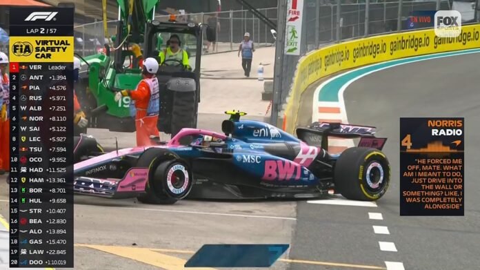 En el arranque de la carrera, el piloto australiano, que tuvo un fin de semana para el olvido, chocó con Liam Lawson y pinchó un neumático, activando un virtual safety car y obligando a la escudería a retirar el vehículo.