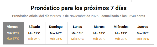 El fin de semana se anticipa más estable, con cielos algo nublados y temperaturas máximas que irán en aumento, alcanzando los 29°C el martes.
