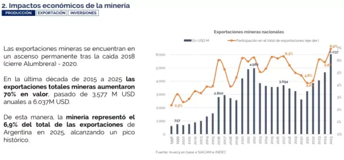 Mientras el Congreso debate, los números gritan. La minería argentina cerró el 2025 con un récord histórico de exportaciones: más de US$ 6.000 millones, un salto del 70% en la última década.