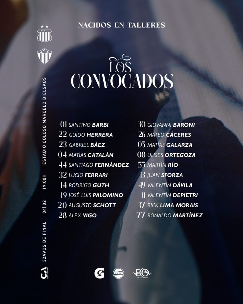 El cuerpo técnico encabezado por Carlos Tévez, dispuso que 20 jugadores viajen y concentren a la espera del partido de Copa Argentina. Respecto a la última convocatoria, no integran la lista de jugadores concentrados Matías Gómez, Diego Valoyes ni Luis Miguel Angulo.