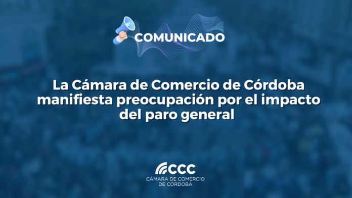 La Cámara de Comercio de Córdoba manifiesta su preocupación por el impacto económico y social del paro general que se desarrolla en el día de la fecha, con afectación de la movilidad, el abastecimiento y el funcionamiento de comercios y servicios.