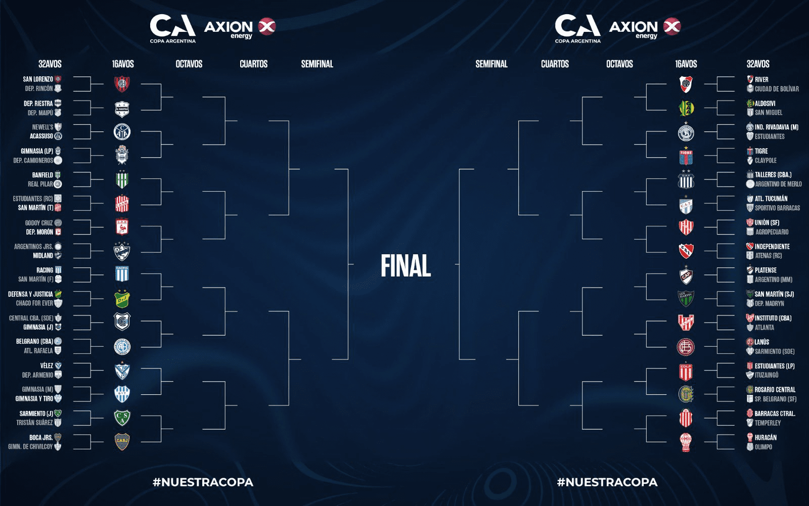 La Copa Argentina completó este miércoles su primera fase con la disputa de los 32avos de final y dejó definido el cuadro de los 16avos.