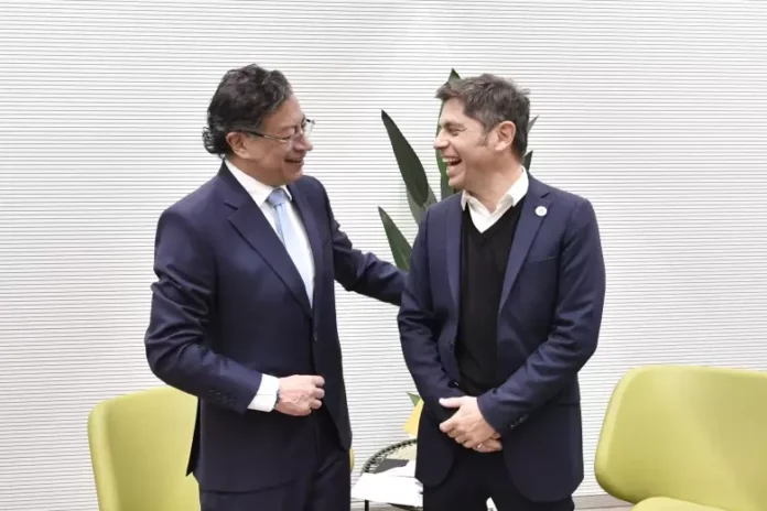 La jornada de hoy incluyó una reunión bilateral con el presidente de Colombia, Gustavo Petro, a quien Milei ha dedicado críticas en reiteradas ocasiones. También está pactada una reunión con el expresidente chileno Gabriel Boric, quien dejó el poder el mes pasado y fue sucedido por José Antonio Kast, aliado regional del líder libertario. Kicillof fue invitado a la Movilización Progresista Mundial -que se desarrolla entre hoy y mañana- por el presidente del gobierno español, Pedro Sánchez. Del encuentro participan también Lula da Silva (Brasil), Yamandú Orsi (Uruguay) y Claudia Sheinbaum (México).